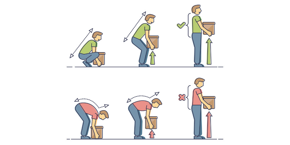 Usar las piernas para levantar, no la espalda.