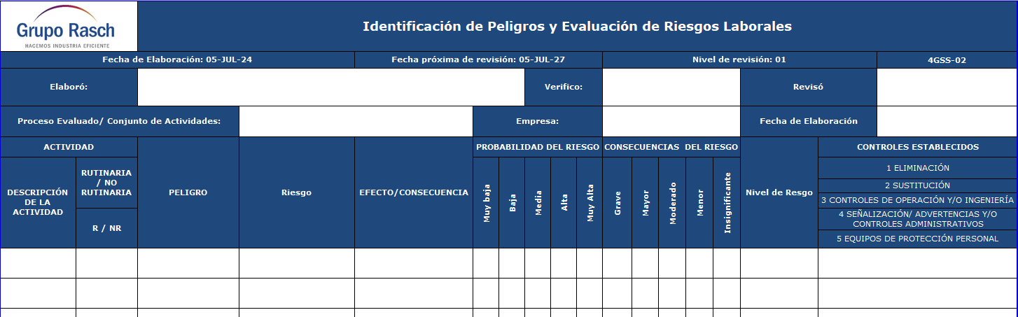 Detectar los peligros y evaluar los riesgos que puedan afectar la salud y seguridad de los trabajadores de todas las divisiones de Grupo Rasch.