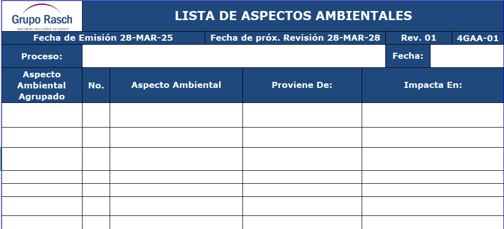 Seguridad y Medio Ambiente: desarrolla y actualiza la lista.