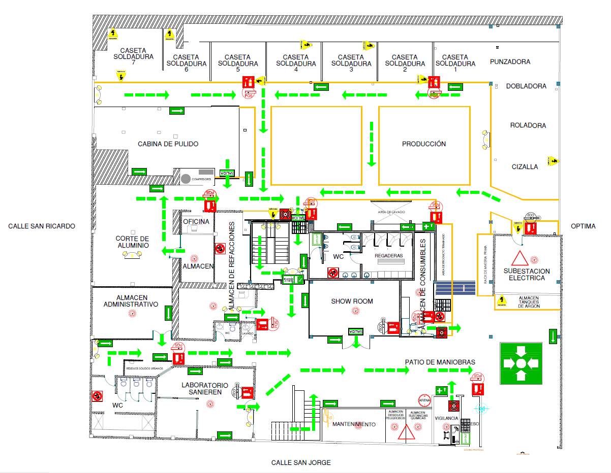 LAY OUT PB (rutas de evacuación y ubicación de extintores)